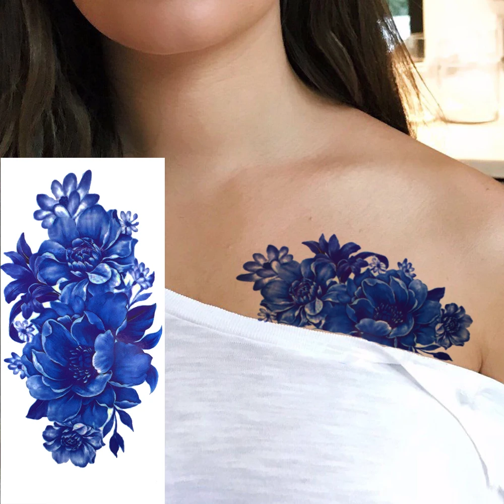 קנו קעקועים ואמנות גוף Sexy Elf Temporary Tattoos For Women Men Realistic Indian Sun Star Moon Dragon Flower Tattoo Sticker Foot Arm Small Tatoos Paste